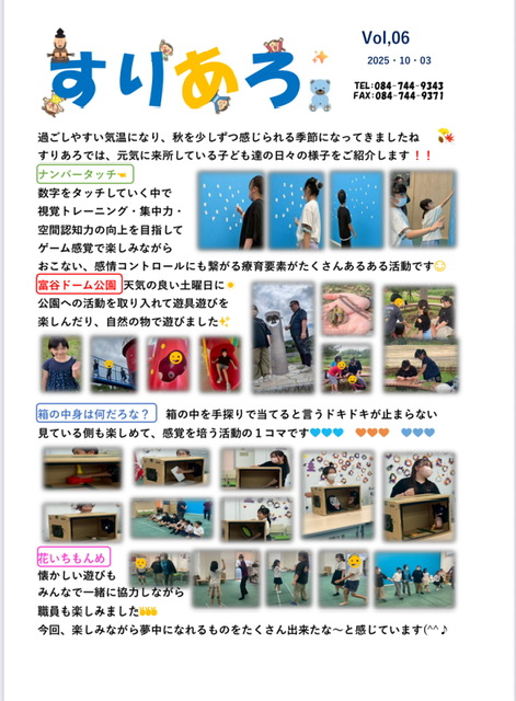 お知らせ 🩵すりあろ通信🩵 2025.10.06 広島県福山市新市町戸手にある放課後等デイサービス3Arrowです🩵過ごしやすい季節になり、涼しい時間に散歩や外遊びをするのが楽しみになって来ましたね🚶今月のすりあろ通信も子ども達の楽しむ姿をたくさんご紹介しているのでぜひご覧ください🎵 ✴️すり〜ぴ〜す通信✴️ 前の記事