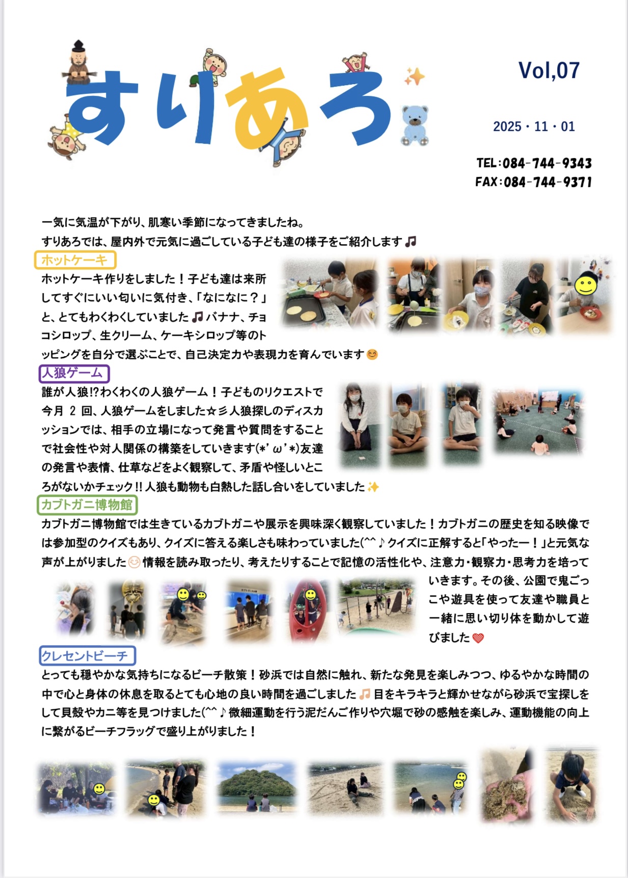 お知らせ 🩵すりあろ通信🩵 2025.11.04 広島県福山市新市町戸手にある放課後等デイサービス3Arrowです🩵朝晩はすっかり冷え込んできましたが、日中はまだまだぽかぽかの陽気が気持ち良いですね☀️今月のすりあろ通信も屋内外で楽しむ子ども達の姿をたくさんご紹介していきます🎵 ✴️すり〜ぴ〜す通信✴️ 前の記事 📝合同研修会議📝 次の記事