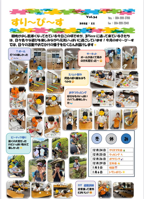 お知らせ ✴️すり〜ぴ〜す通信✴️ 2025.11.02 広島県福山市山手町にある放課後等デイサービス3Pieceです🧩紅葉🍁が楽しめる季節になってきましたね✨自然を感じながら四季を楽しめるのは心のチャージになります☺️今月のすり〜ぴ〜す通信が完成しました❗️ぜひ、ご覧ください☆ 🥜落花生掘り🥜 前の記事