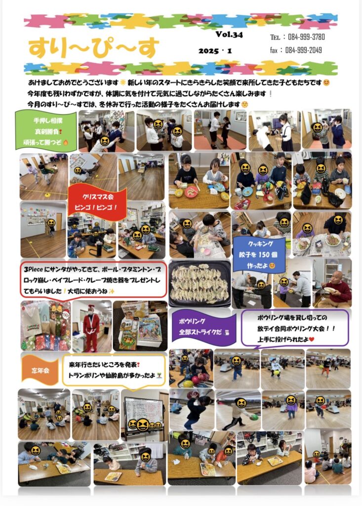 お知らせ ✴️すり〜ぴ〜す通信✴️ 2026.01.26 広島県福山市山手町にある放課後等デイサービス3Pieceです🧩今回は、12月の冬休みで行った活動をたくさんご紹介しています♪ぜひ、ご覧ください✨ Screenshot ✴️2月活動予定表✴️ 前の記事